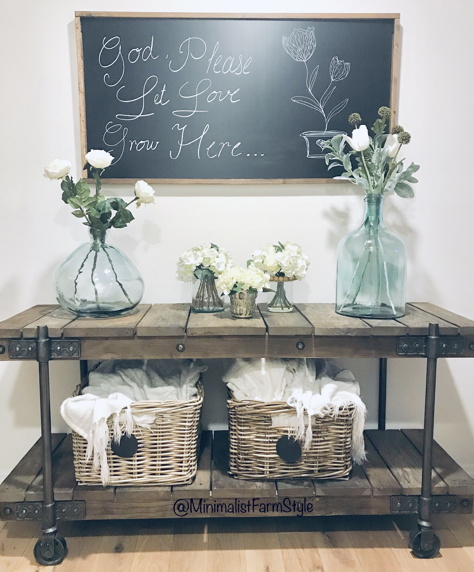 An easy minimalist farmhouse style design requires a bright, neutral canvas and woodsy decor.